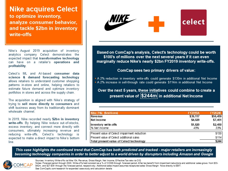 Nike’s August 2019 acquisition of inventory analytics company Celect demonstrates the expected impact that transformative technology can have on a retailer’s operations and profitability.